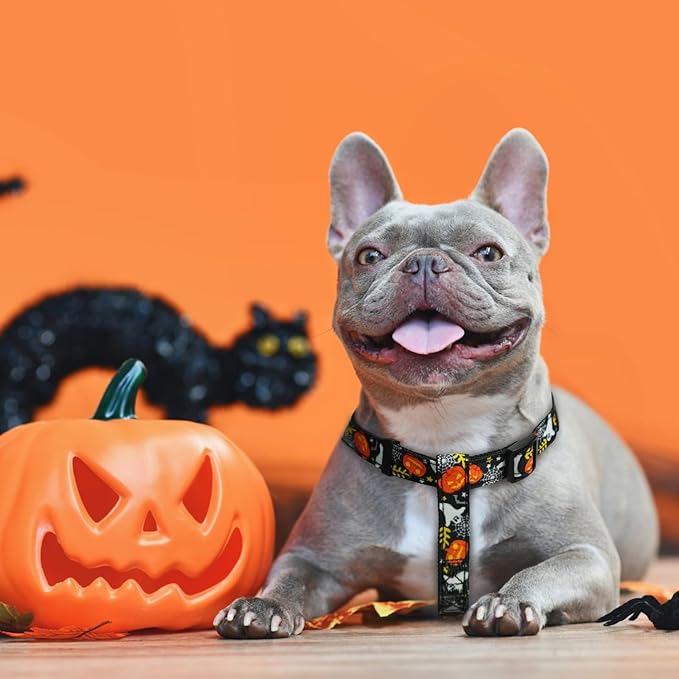 PUPTECK No Pull Dog Harness Soft Adjustable Basic Nylon Step in Puppy Vest Outdoor Walking with ID Tag, Halloween, S