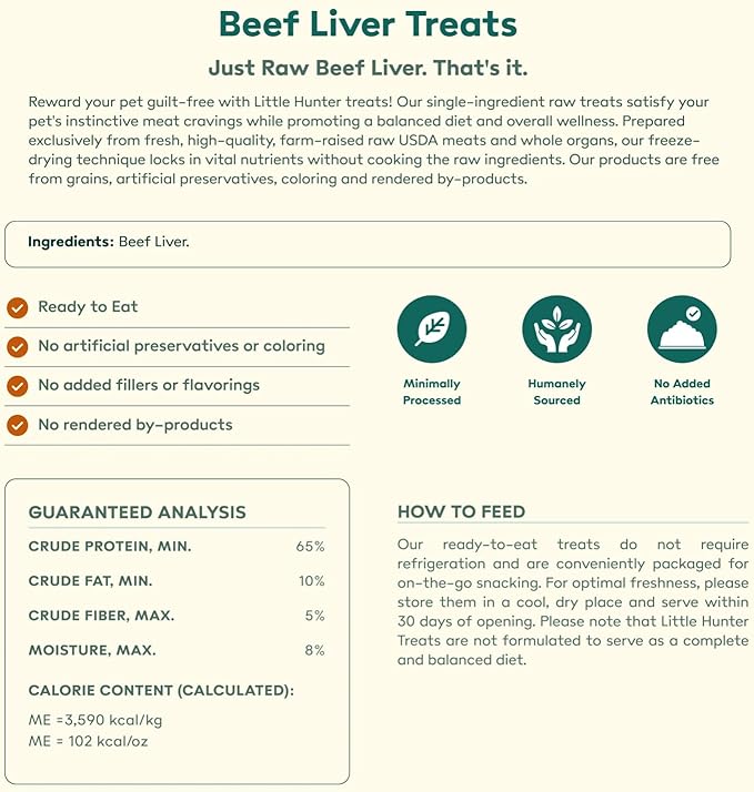Little Hunter Freeze Dried Dog Treats - Beef Liver - Raw Single Ingredient Beef Liver Dog Treats for Snacks, Training, Dog Food Toppers - All Natural, Healthy Dog & Puppy Treats, 2 oz
