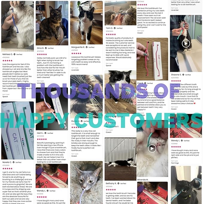 - 😽【Premium Quality】 Colors & Cats: Make dental care a colorful affair! Choose from vibrant colours - Ocean Blue, Lavender Light Purple, Amethyst Purple, Space Blue, & Flamingo Pink. Not just aesthetics - opt for a different color for each cat to avoid sharing germs. Imagine sharing a toothbrush with your brother... Gross! 😻🎨