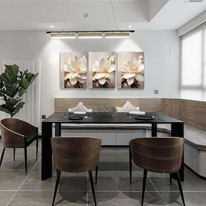 Yxbhhym Flower Canvas Wall Decor Living Room Bathroom Wall Art Paintings for Bedroom Wall Art Dining Room White Floral Picture Poster Artwork Modern Framed Art Prints 3 Piece Home Decorations