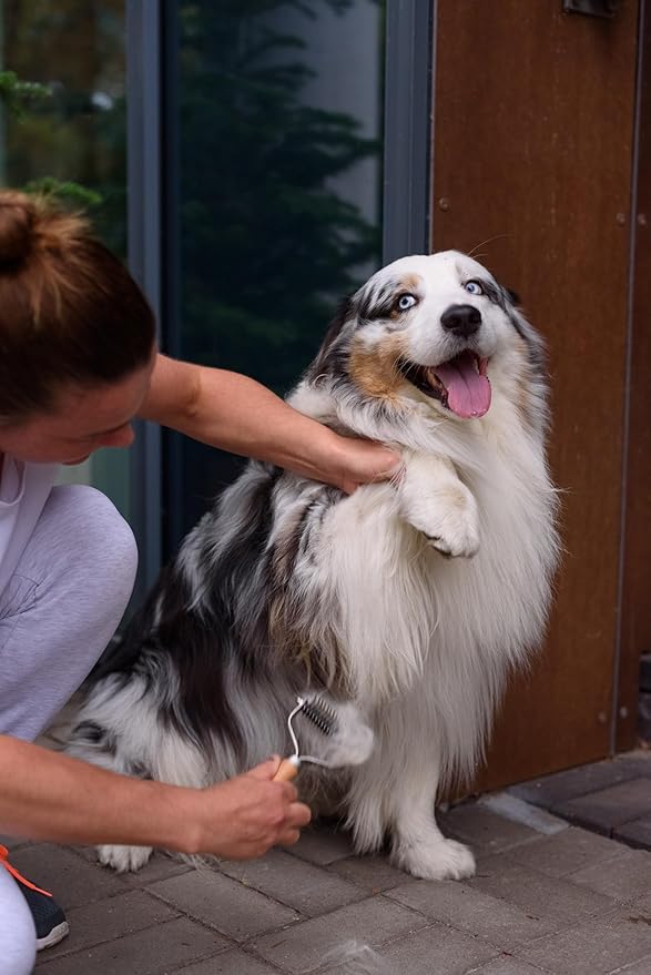 - IMPROVED DUAL-SIDED RAKE: Featuring an upgraded dual-sided design, this undercoat rake for dogs is ideal for double coats. Effortlessly detangle and remove mats or dense fur with this reliable grooming tool. Dog brush for long haired dogs.