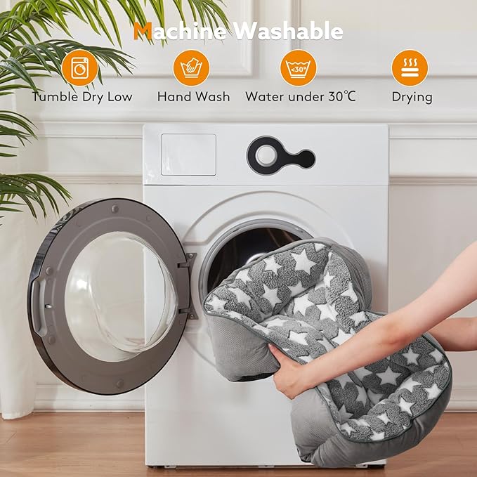 - Soft Fluffy Dog Bed: This medium dog bed boasts a star pattern design inside, balancing both practicality and aesthetics. Crafted with soft, stain-resistant suede exterior and cozy lamb fleece interior, it keeps your pet warm and comfortable in winter it filled with eco-friendly PP fiber, it offers a breathable and cozy sleeping space.