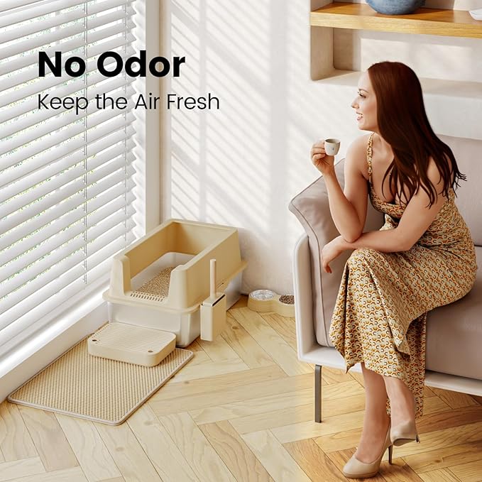 - 【EFFORTLESS ODOR CONTROL】Engineered to absorb urine and mask odors effectively, this steel litter box ensures a pleasant environment for both you and your cat. Unlike traditional plastic boxes, our extra large litter box is easy to clean—simply rinse with water and wipe with a cloth. Plus, with the included wall-mountable cat litter scoop, maintaining your cat litter box is a breeze.