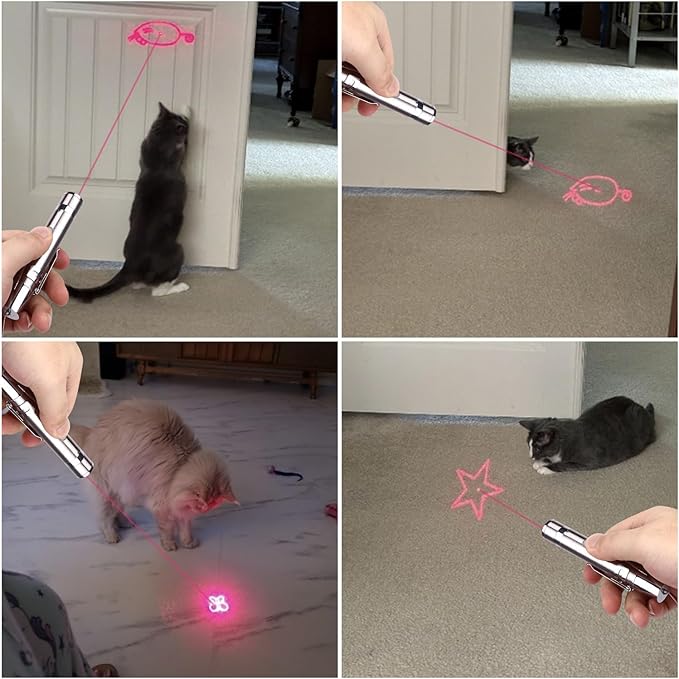 - 【High Quality and Durable】The funny cat toy is made of high-quality stainless steel, making it smooth and durable. It comes with a metal clip design, making it easy to carry anywhere. It offers 5 different patterns (dot, butterfly, smiley face, star, mouse) to keep your cat entertained.