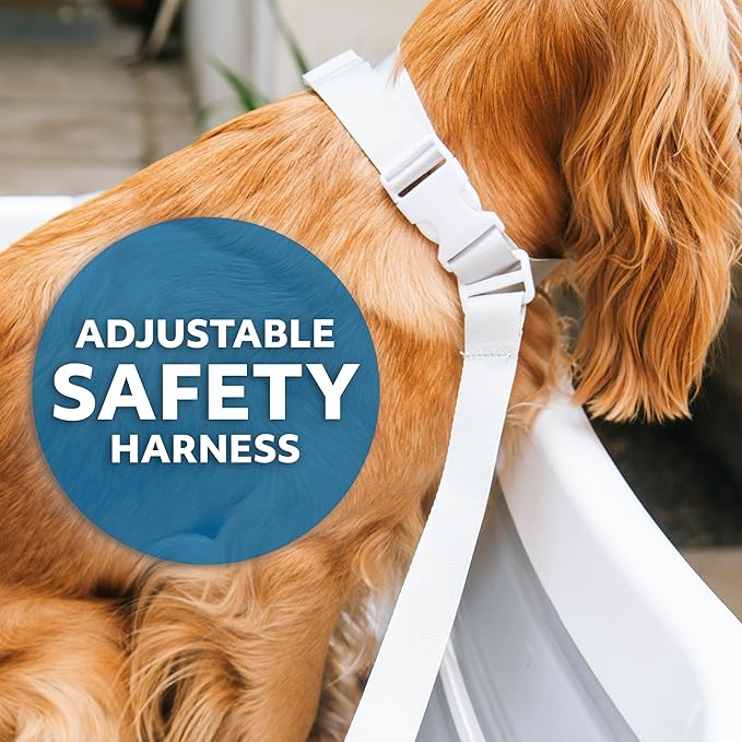 - SAFE & SECURE: Adjustable harness keeps pets in place. Enjoy stress-free, safe baths