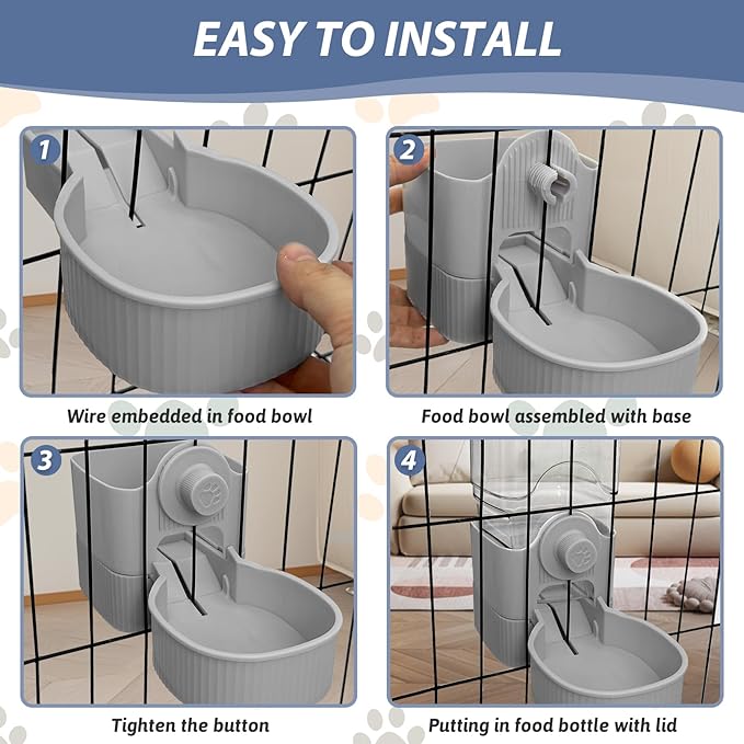 - 🐰 [Easy to Use]: Bunny feeder for cage has a lid on the top for easy refilling of pet food. The water bottle needs to be removed to unscrew the lid to refill. It is recommended to clean it 1-2 times a week to provide your pet with a more hygienic and comfortable eating experience