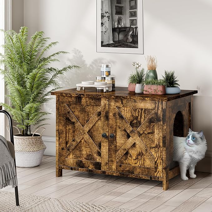 - Stylish Design: This cat litter box enclosure features a sleek and modern design that seamlessly blends with your home decor. It doubles as a functional piece of furniture, adding style to any room while discreetly concealing the litter box.