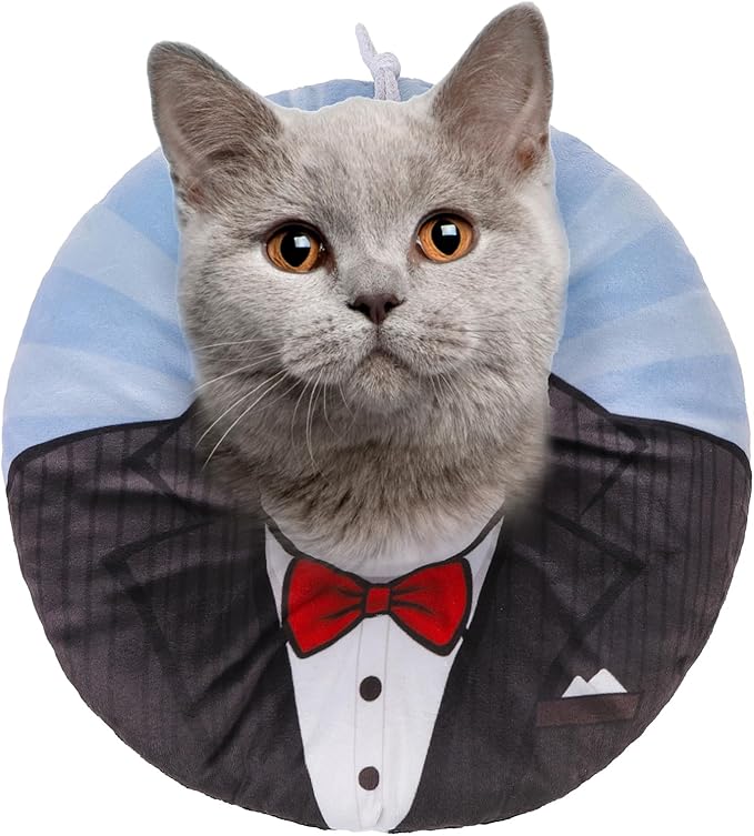 - Cat Cone Collar Alternative- 1)Kitties have claws and can pop inflatable collars pretty easily; 2)Not comfortable dragging a cat's head around with a plastic cone- Our adorable pet donut protective cone can play, sleep, use the litter, eat, etc. Pillow-like comfort can be used as a pillow cone when they nap.