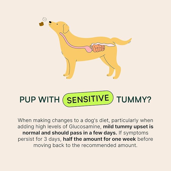 - Highly Digestible: Designed to be gentle on the stomach, our joint chews are suitable for pups with sensitive tummies - because the best joint support should also be easy (and tasty) to take.