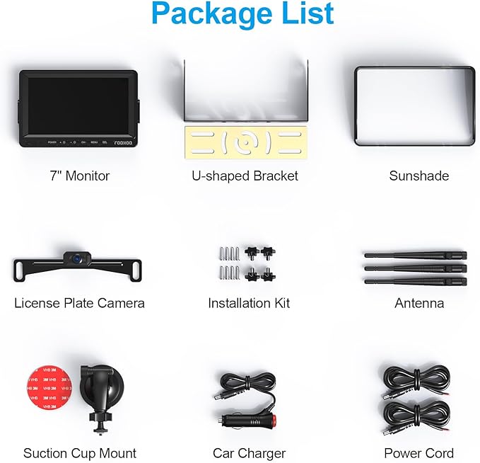 - Ultra HD Picture Quality: This system adopts CCD image sensor with embedded processing chip to avoid the problem of shaky and blurred images when driving on bumpy roads. It will improve the color noise of the image output, so you can see what you see on the monitor as if with your own eyes, and transmits real-time 1080P HD picture quality. And it can switch to dual-split screen, you can add 2nd camera if need