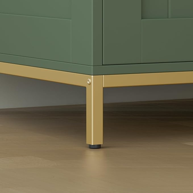 Homhedy Cat Litter Box Enclosure, Cat Washroom Furniture with Metal Frame, Pet House, Fit Most of Litter Box, Modern Style, Green and Gold