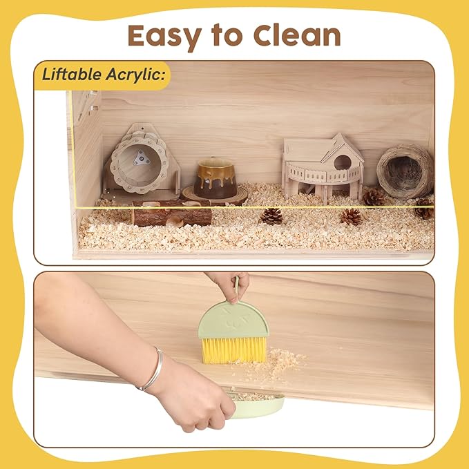 - Convenient Access & Visibility --- The two openable acrylic tops provide easy access for feeding, cleaning, and interacting with your pets. These transparent windows not only allow for effortless access but also offer excellent visibility, enabling you to keep an eye on your petsโ activities and health throughout the day.