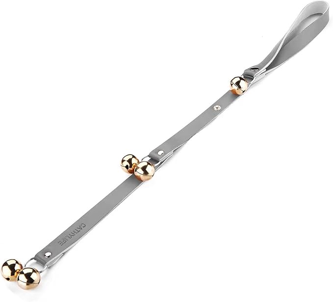 Leather Dog Doorbells for Door Knob/Potty Training/Go Outside, Length Adjustment Copper Dog Bell, Housetraining Hanging Bell, Gray Leather Golden Bells