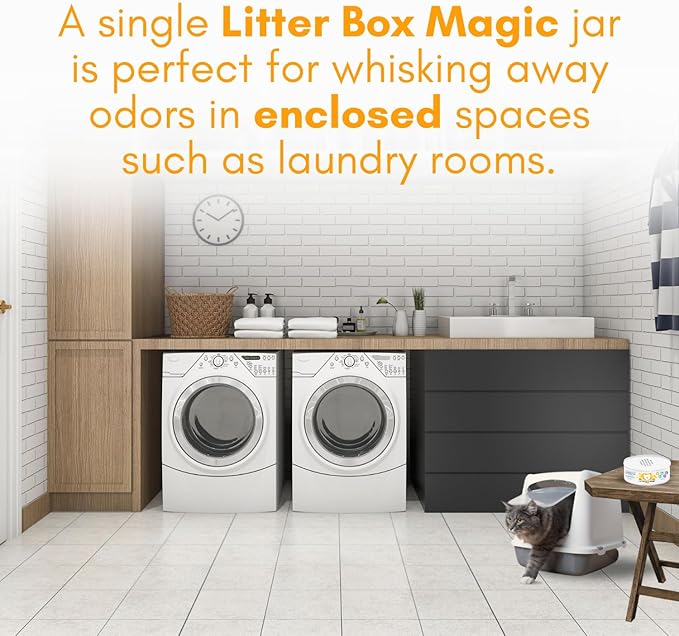 - SAFE FOR YOUR PETS - Our cat deodorizer odor eliminator is thoughtfully crafted to be safe for your cat, making it a perfect addition to any family home. The innovative solid litter box odor absorber gel inside the jar eliminates concerns about spills or messes, even if your curious cat gives it a playful nudge. Enjoy a consistently fresh environment without the hassle of clean-up, all while prioritizing safety and compassion for animals!