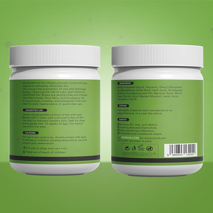 - 👩⚕️ ADVANCED RECOMMENDED FORMULA - NOVEHA Dog Ear Cleaning Wipes boast an advanced formula. Safe for dogs and cats, your pets are in the best hands with our top-tier ear care solution.