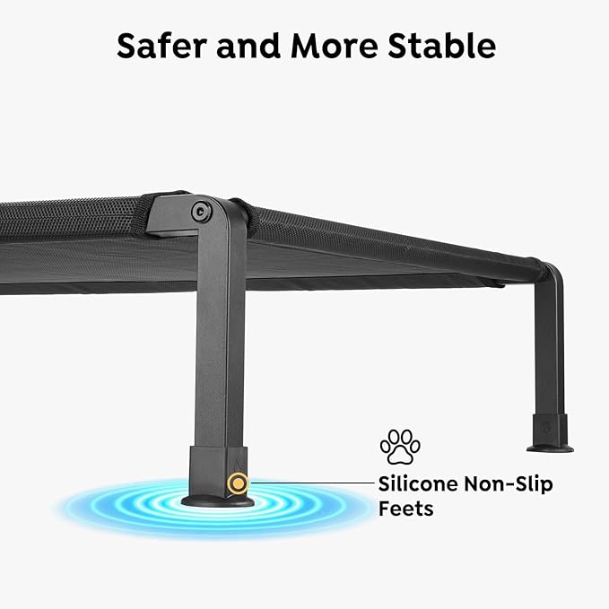 - Enhanced Durability: One Piece Tubing Sturdy Design resists bending, and the heavy-duty frame is thicker than other normal beds, ensuring lasting durability. With anti-slidding silicon feet, this elevated pet bed offers superior stability, making it a safe and reliable choice for even the most active pets.