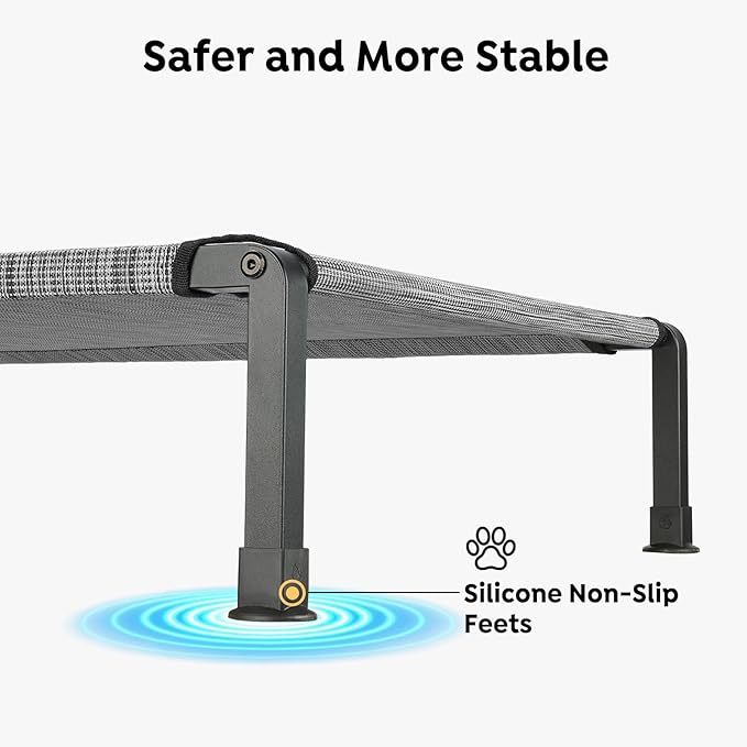 - Enhanced Durability: One Piece Tubing Sturdy Design resists bending, and the heavy-duty frame is thicker than other normal beds, ensuring lasting durability. With anti-slidding silicon feet, this elevated pet bed offers superior stability, making it a safe and reliable choice for even the most active pets.