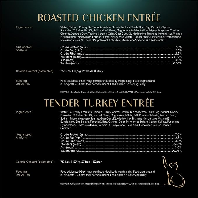 - Delicious Recipe: Sheba Perfect Portions Cuts in Gravy Wet Cat Food is grain-free and contains no artificial flavors or preservatives; trace amounts may be present due to cross-contact during manufacturing