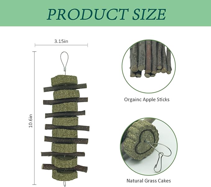 - Security Material:All products are made of 100% natural wood Sticks and Timothy hay grass,no pesticides, carefully selected,for chewing or playing, good for the health of your cute pets.