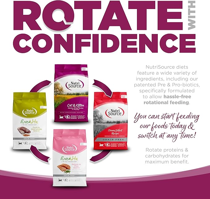 - NutriSource cat & kitten diets are scientifically formulated to promote easy rotational feeding with other NutriSource diets
