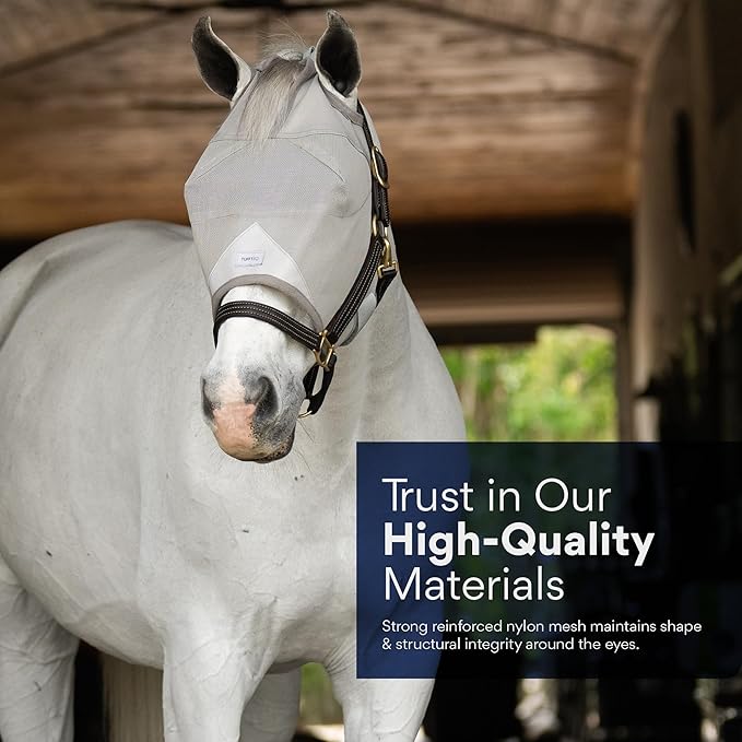 - ๐๐ฎ๐ซ๐๐๐ฅ๐ ๐๐ฒ๐ฅ๐จ๐ง ๐๐จ๐ง๐ฌ๐ญ๐ซ๐ฎ๐๐ญ๐ข๐จ๐ง: With strong nylon reinforcements, this UV mask is more durable than others on the market. It retains its shape and withstands daily wear and tear, providing long-lasting fly and UV protection for your horse.