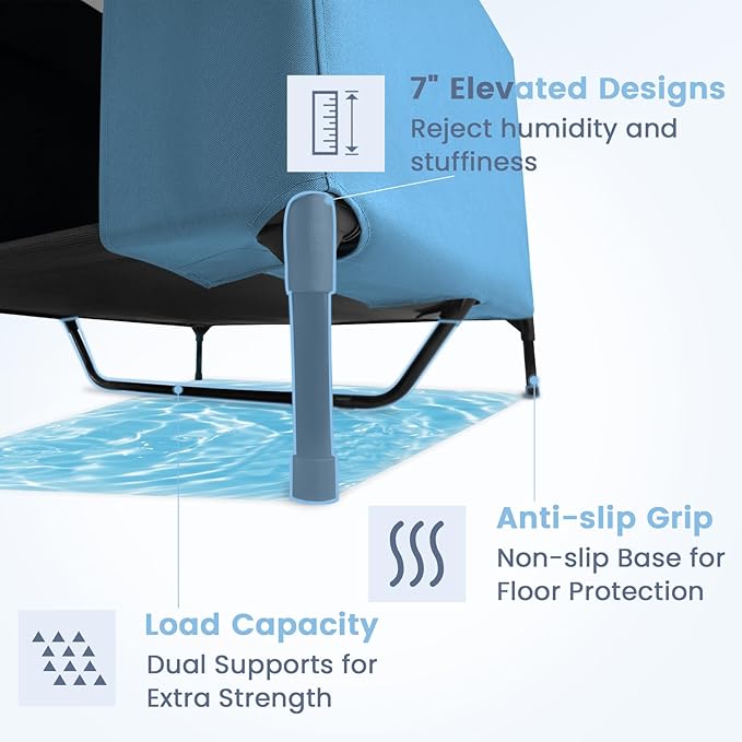 - Versatile 2-in-1 Dog House: Assembly is a breeze with no tools or screws needed – your pet will be lounging in luxury within minutes. When needed, effortlessly transform this weatherproof structure into a 2X1 Textilene elevated dog bed for easy maintenance and unparalleled comfort.