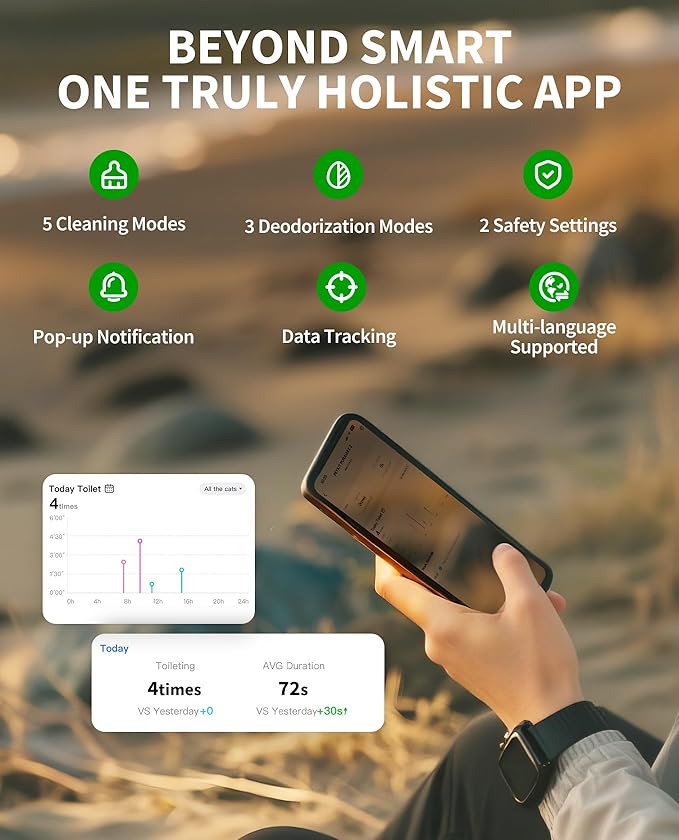 - Style : Self-cleaning cat litter box, Smart app control, Hands-free cleaning experience