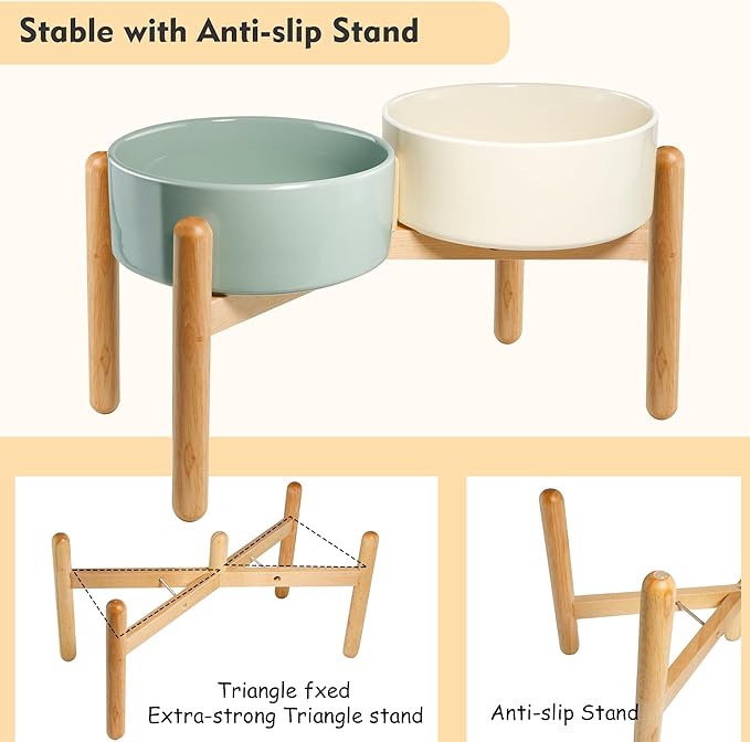 - Stable and Anti-Slip: The cross-frame design with heavyweighted ceramic dog bowls,rubber feet on the base provides excellent stability, preventing pets from knocking the bowls over and sliding