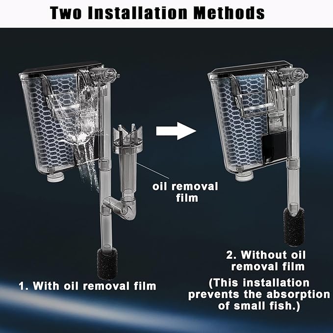 - ๐ The Parameter of the Filter: AC110V/60Hz, 2.5W, 250L/H, the flow is adjustable. The filter is hanging back, which allows for more room in the tank. โ ๏ธRemember, fill the filter with water before every start-up!