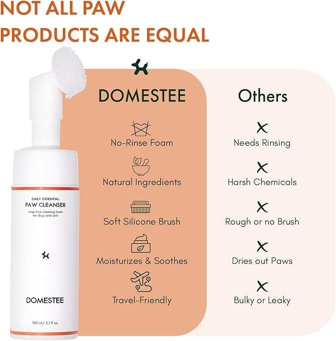 - QUICK & NO-RINSE APPLICATION: Shake the bottle dispense the foam and use the silicone brush to gently clean your petโs paws no rinsing or baths required. Wipe away dirt and repeat as needed. The reusable silicone brush is easy to clean making it a hassle-free solution for busy pet owners and a stress-free experience for pets.