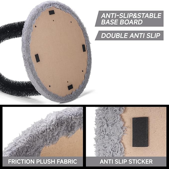 - Stable Base Board: This cat grooming brush is maded of stable density board with a diameter of 15โ heavier than wooden board. The bottom with anti slip pad, combined with anti slip plush cloth will not slip even on smooth ground.The base is stable enough for vigorous scratching.