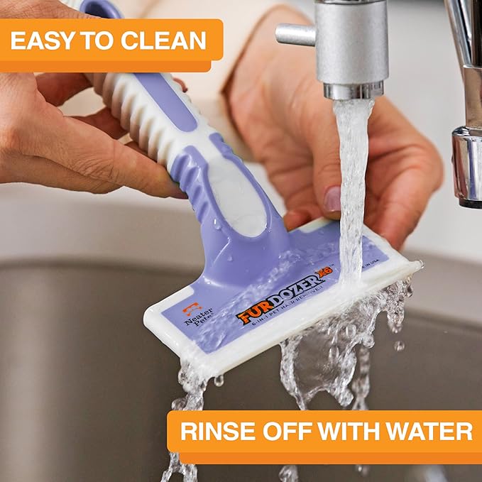 - GREAT FOR EMBEDDED HAIR - The textured main pad and serrated squeegee can get deep into carpets and couches to remove embedded hair that you didnโt even know was there. Not just for pet hair, the FurDozer will also help to collect and clean hair, lint, and other debris from your car, furniture, and more.