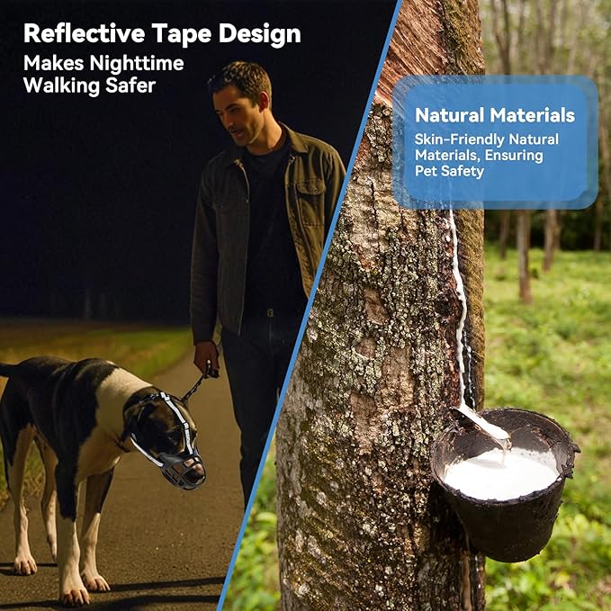 - Eco-Friendly Material for Safety and Durability: Our Dog Muzzle for Large Dogs is Crafted from Non-toxic, Environmentally Friendly TPR Silicone. This Lightweight yet Durable Material Is Odorless, Soft to the Touch, And Sturdy Enough to Resist Deformation, Ensuring Long-Lasting Use While Prioritizing Your Petโs Safety