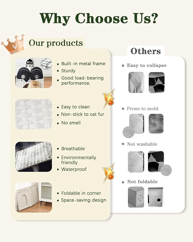 - Easy Care and Stylish: The rattan of the cat cubby is waterproof, simply remove the top level to fully clean the interior of the kitten beds for indoor kittens. Keep cats environment pristine with minimal effort. Modern style fits anywhere in the home