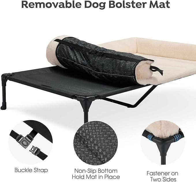 - Cooling Mode & Joint Support: Simply remove the top mat to turn this bed into a breathable cooling cot. The raised design helps avoid hard, dirty floors and enhances airflow-ideal for relieving joint pressure and keeping your dog cool in summer days