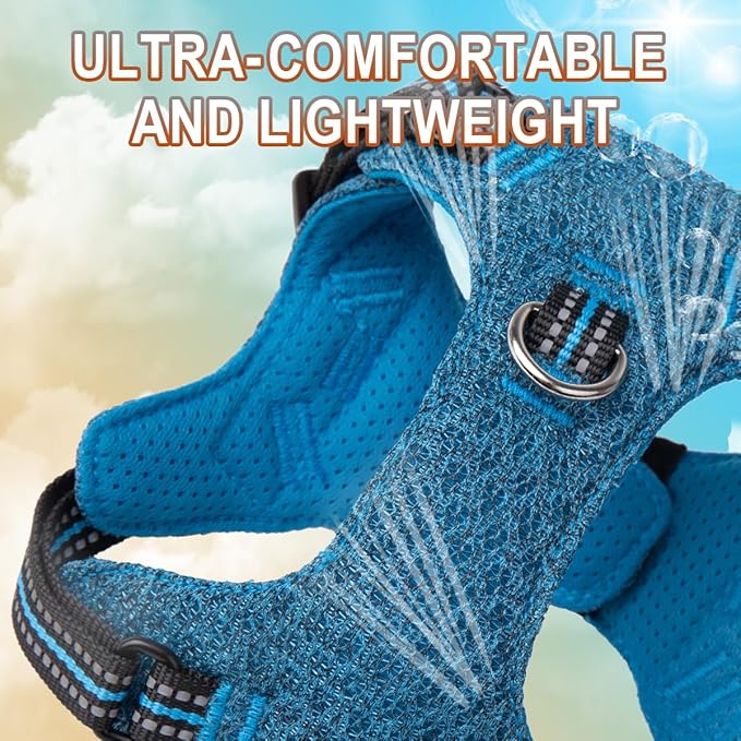BARKBAY Dog Harness, Reflective Adjustable Step-in Vest Harness, Blue/Black, XXS