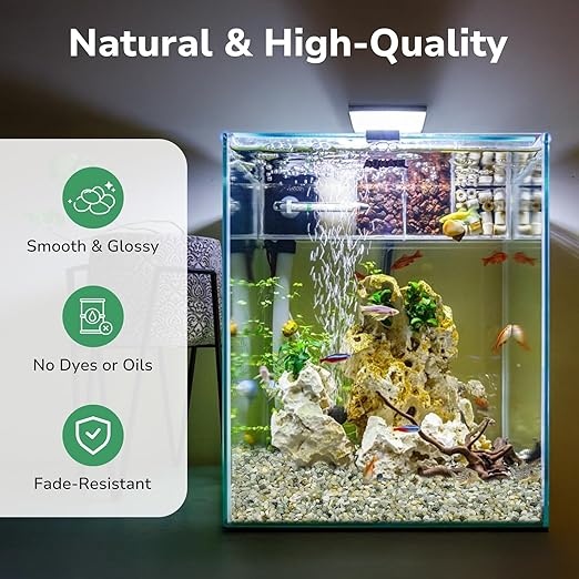 - Natural Stones: Skillfully polished and waxed, these stones feature vivid hues and a glossy finish. Free of fillers, dyes, and oils, they resist fading, maintaining long-lasting allure while safeguarding your plants and pets