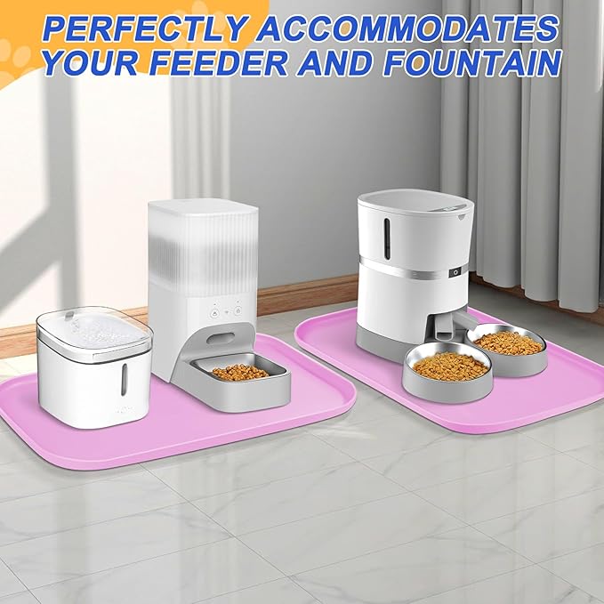 - Widely Used - The anti slip dog food spill mat with high sides can also be used under pet water fountain, automatic feeder, and litter boxes to help contain messes and protect floors. Use as boot mat, shoe matt tray for entryway, pet water splash mat, dog water bowl drip pan. Can also be used for dog crate, trash can, pet water dispenser, countertop, plant, fish tank.