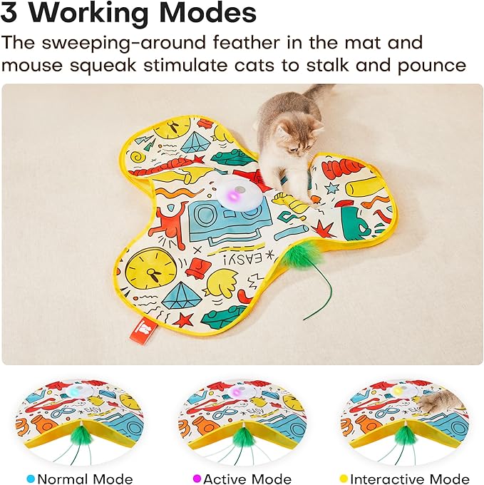 - Smart Motion Sensor & Three Modes โ Equipped with intelligent touch activation, this electronic toy allows your cat to self-play by simply touching the toy. Choose from three adjustable modes: normal, active, and interactive, keeping your cat energized and reducing boredom for hours of indoor fun and enrichment.