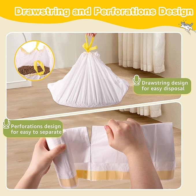 - ๐Super Convenient Drawstring Design: Each litter box waste bag is designed with a convenient drawstring, every time you change the litter, you just need to pull up the drawstring to lift the bag and throw it away, it is clean and hygienic for better maintenance and cleaning of the litter box, which brings convenience for your daily life.