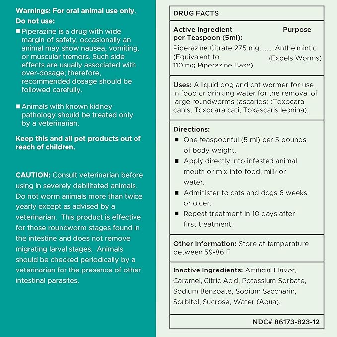 Dog and Cat Dewormer - 12 oz of Wormer Liquid to Paralyze and Expel Roundworms - Kitten and Puppy Dewormer