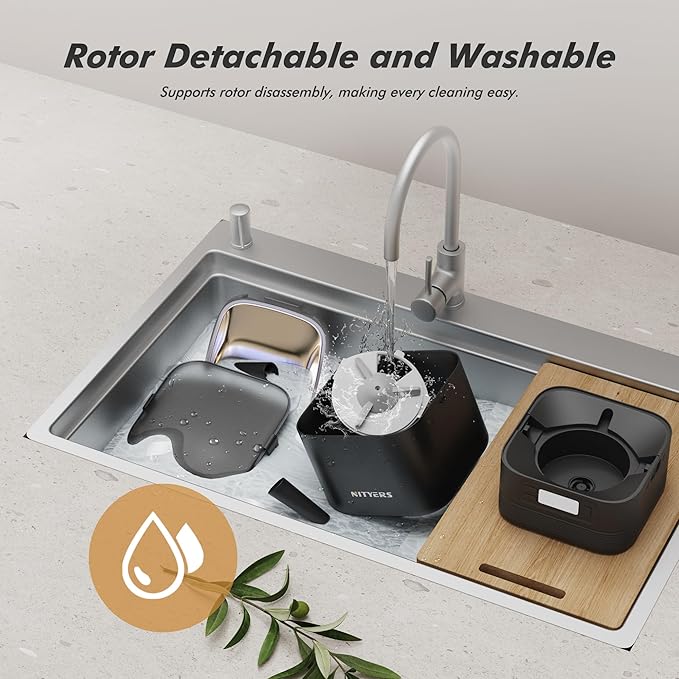 - Washable Dispensing Mechanism: Every part that comes into contact with food is designed for hassle-free cleaning. The rotating dispenser, food container, top lid, and food tray are all detachable, making it easy to keep your feeder spotless. It also includes a premium stainless steel bowl thatโs rust-resistant, easy to clean, and more hygienic than plastic, helping to prevent chin acne and residue buildup so your petโs meals stay cleaner and fresher.