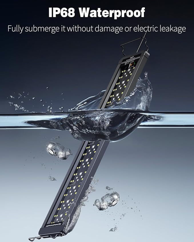 • D/N Mode: Customize the daytime and night working hours with the IP68 waterproof fish tank light. Daytime duration: 6 h, 8 h and 10 h; Night duration: 2 h, 3 h and 4 h. Simulate the daylight and moonlight to create a natural environment.