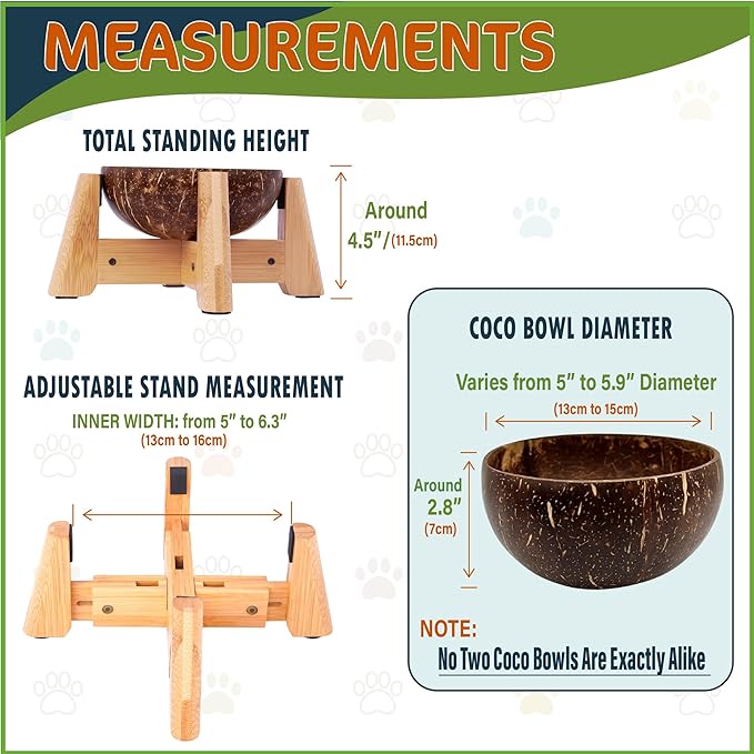 - Dimensions (H:5"xW:5") - Standing at 5 Inches high with stand installed. The coco shell bowl width is around 5.5-inch in diameter.