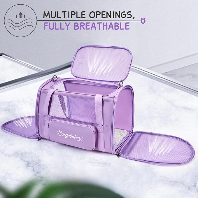 - Well-made Large Cat Carrier: With upgraded memory metal for sturdy frame, this cat carrier for 2 cats does not collapse. Made of breathable fabric, BurgeonNest cat carrier has 3 doors to open, it is more convenient to put your dog cat in or out. Plush cushion with sturdy bottom inserts ensures comfortable environment for pets.