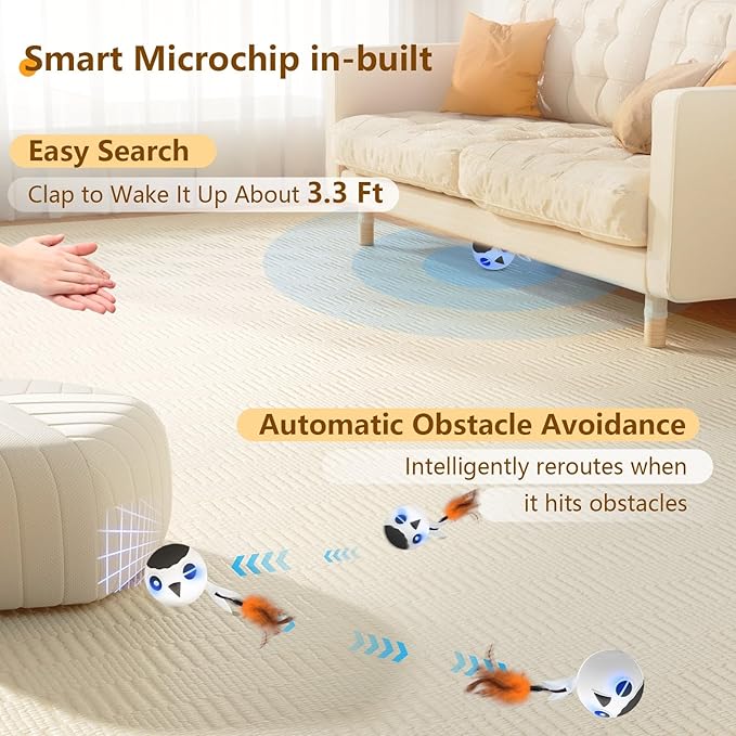 - 🐾APPLAUSE SEARCH LOST BALL: No need to worry about losing the cat ball toy,👏 just clap your hands within 1 meter of the ball to activate the interactive cat toy ball. 🔉Voice Activate (80db + within 1 Meter)- ORSDA's upgraded interactive cat toy ball has a sensitive chip that activates the function by sound.