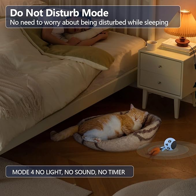 - 📑DO NOT DISTURB MODE: You no longer need to worry about being woken up by the sound of hitting the floor in the night. ORSDA moving cat toy ball can adjust the normal mode and 🔕do not disturb mode. 4 functions: simulated sound/touch/voice /timing activate. Simulated audio on/off. Can be turned off Sound/Timer activation. 3 hours activation 1 minute.