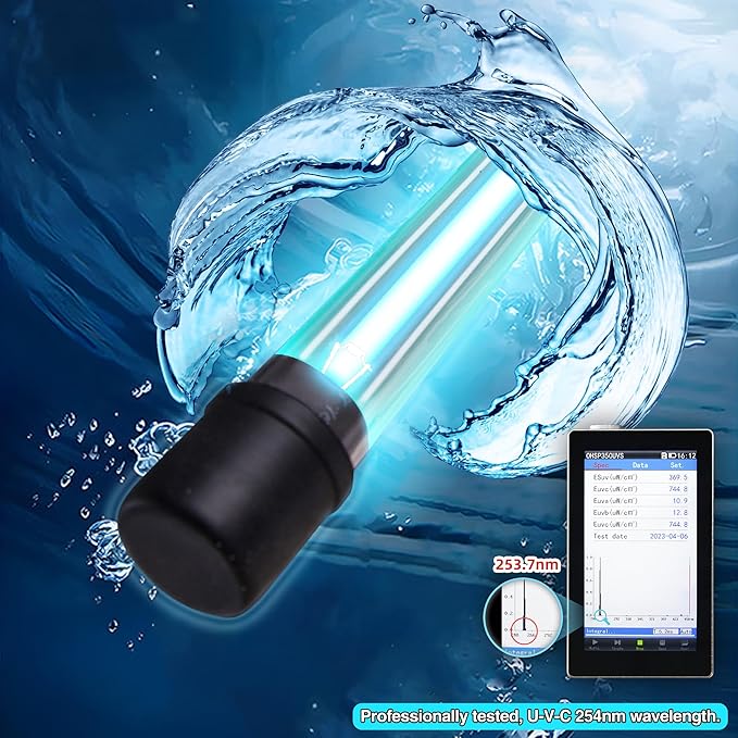 - TRIPLE FILTRATION - First stage 254nm light. Second stage of ceramic bio-balls decompose substances. Third stage of the filter absorbs impurities.