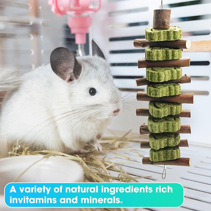 - Fun string hanging design, inspiring vitality -- detachable grass cakes and peach wood blocks can be flexibly combined and hung in cages or held for interaction, satisfying the exploratory nature of rabbits and reducing the need for disassembly.
