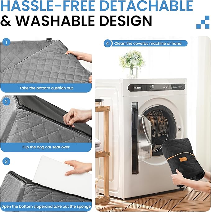 - Easy to Install & Clean: The adjustable straps securely attach to your car’s seats, and the removable cover makes cleaning hassle-free. Keep your car clean while giving your pet the best travel experience!